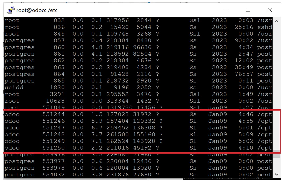 3. Check worker dengan perintah #ps aux||grep odoo dan hasilnya seperti gambar berikut ini: